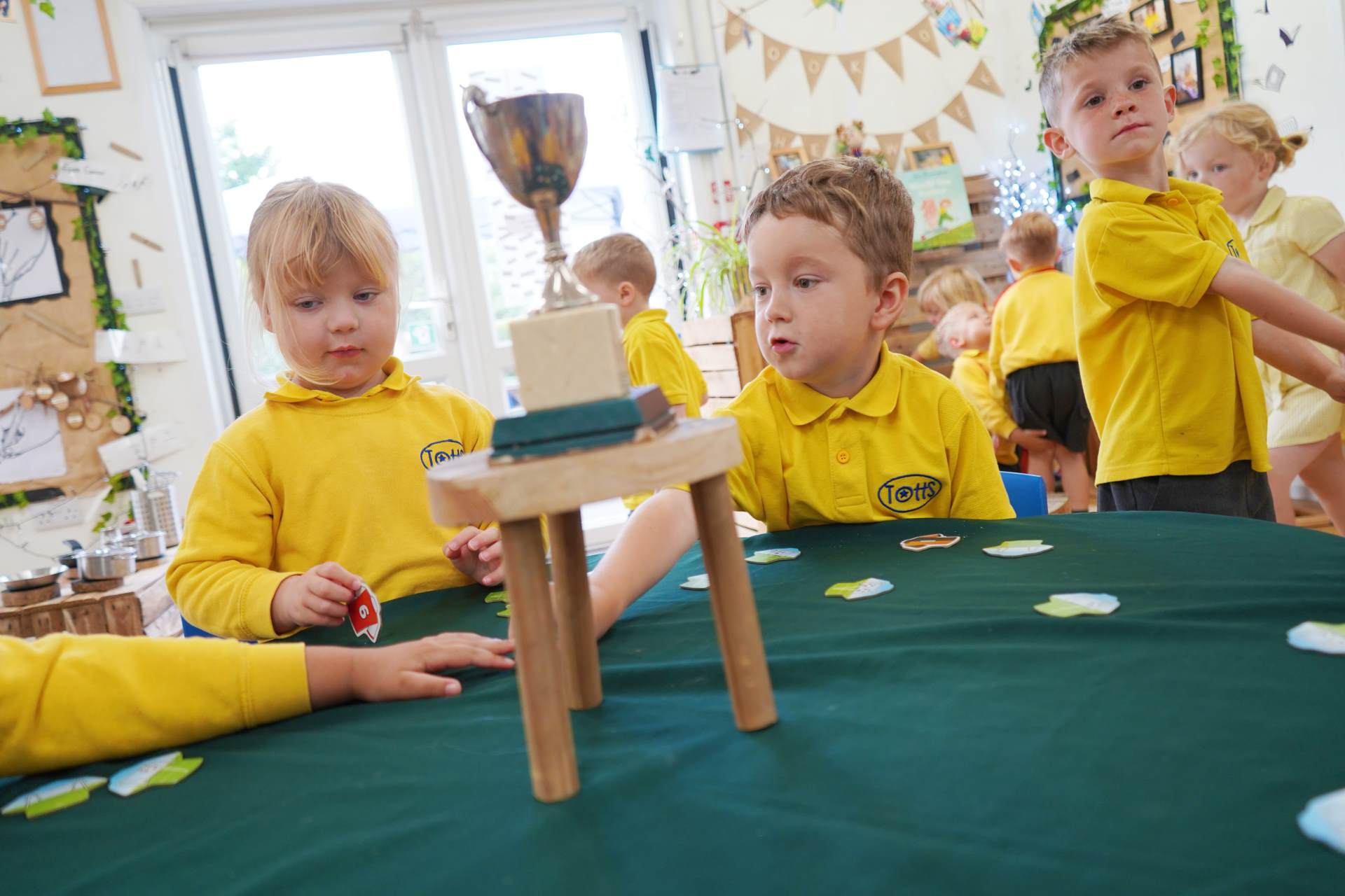 The aim of our Nursery curriculum is to equip children with the skills and knowledge they need to explore and understand the world around them. We believe that children grow and develop when they have access to a well thought out learning environment and engaged adults. The teaching and learning of new skills and knowledge is delivered through both adult and child led opportunities both indoors and outdoors. At Totts Nursery we bring curiosity, awe and wonder into Early Years education and creating the 'thinkers' and 'doers' of the future. We focus on the importance of knowledge and skills that will support children in every way possible so that they can make the most of opportunities and fulfill their potential along with promoting their independence.